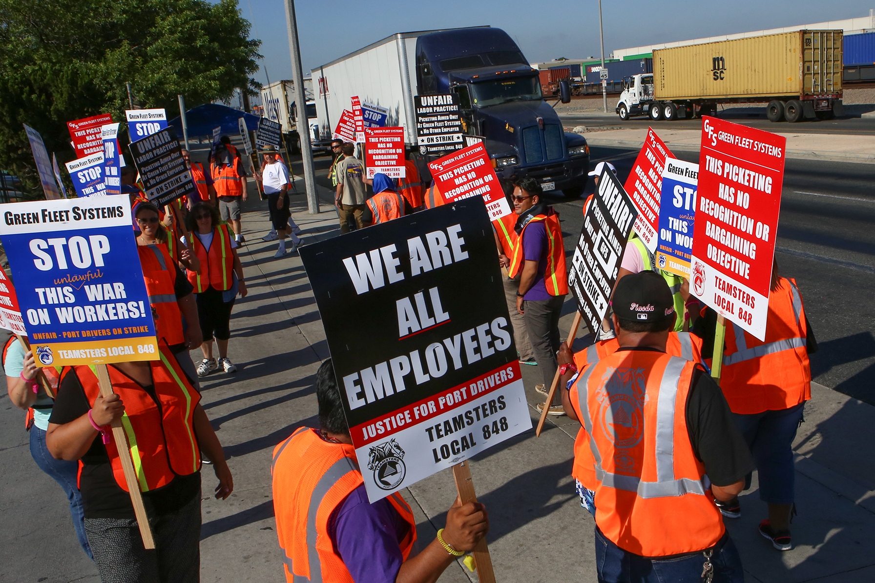 Who: Striking port truck drivers from Pacer Cartage and Harbor Rail Transport.