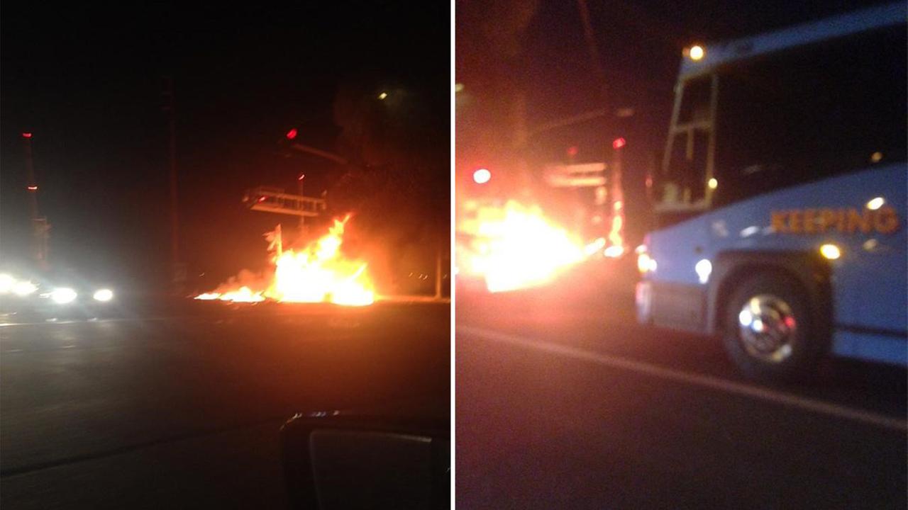 A KABC-TV news helicopter was showing firefighters treating numerous people at the scene.