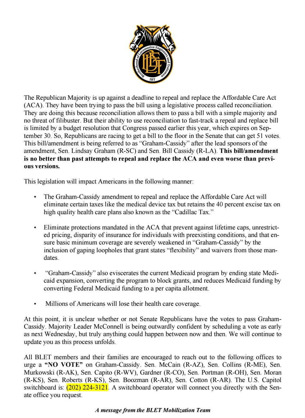 Brotherhood Of Locomotive Engineers and Trainmen Division 5 Los Angeles Graham-Cassidy amendment ACA Image | Posted on September 23, 2017 by LCDIV5